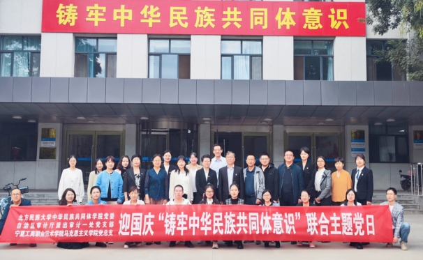 在庆祝中华人民共和国成立74周年之际,为深入贯彻落实习近平总书记关于铸牢中华民族共同体意识的重要论述与习近平总书记关于加强和改进民族工作的重要思想,进一步做好自治区第40个“民族团结进步月”宣传教育工作,进一步引导广大党员树立正确的国家观、历史观、民族观、文化观、宗教观,不断增进“五个认同”。9月27日下午,宁夏工商职业技术学院马克思主义学院党总支、自治区审计厅派出审计一处党支部、北方民族大学中华民族共同体学院党委联合开展了迎国庆“铸牢中华民族共同体意识”主题党日活动。