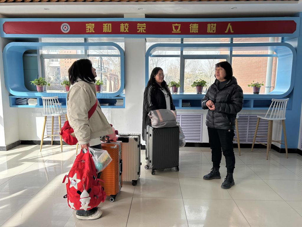 返校报到现场秩序井然,各项工作有条不紊。后勤和物业人员把教室、食堂和道路积雪等打扫得一尘不染,努力营造一个和谐、健康、舒适的教学和生活环境;公寓老师和宿管阿姨早早打开公寓大门,检查水电安全,迎接同学们入住;校门口辅导员老师们全员上岗,以饱满的热情欢迎莘莘学子平安归来,整个校园内生机盎然。