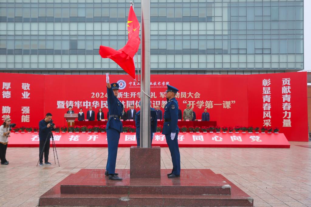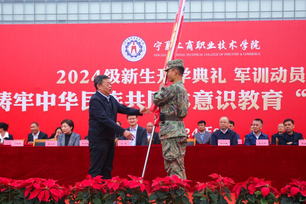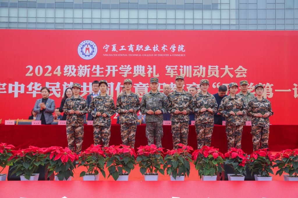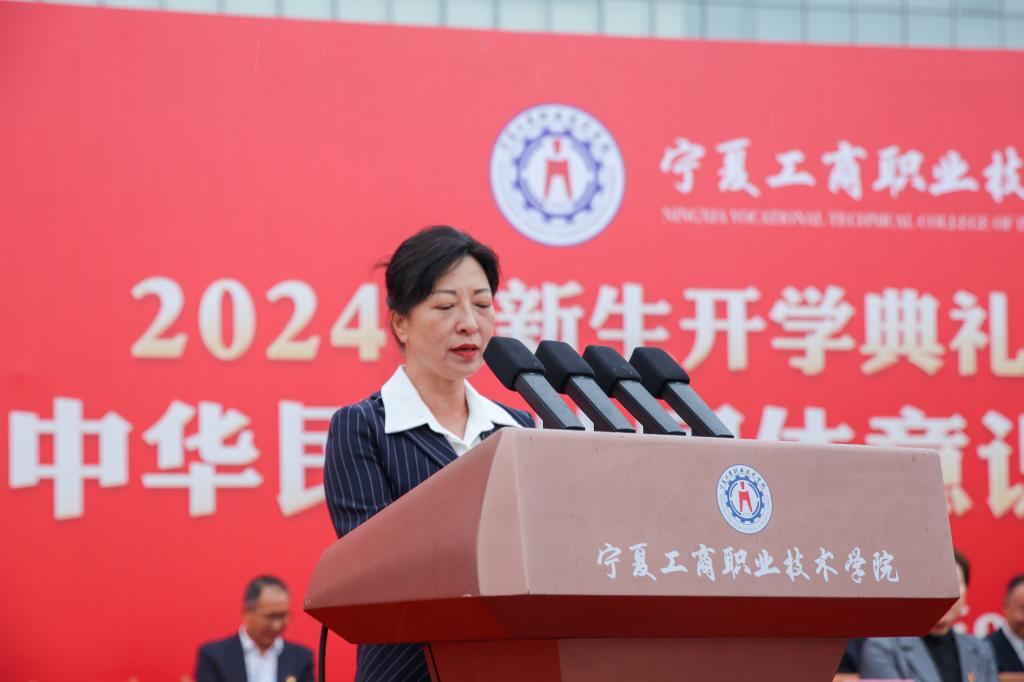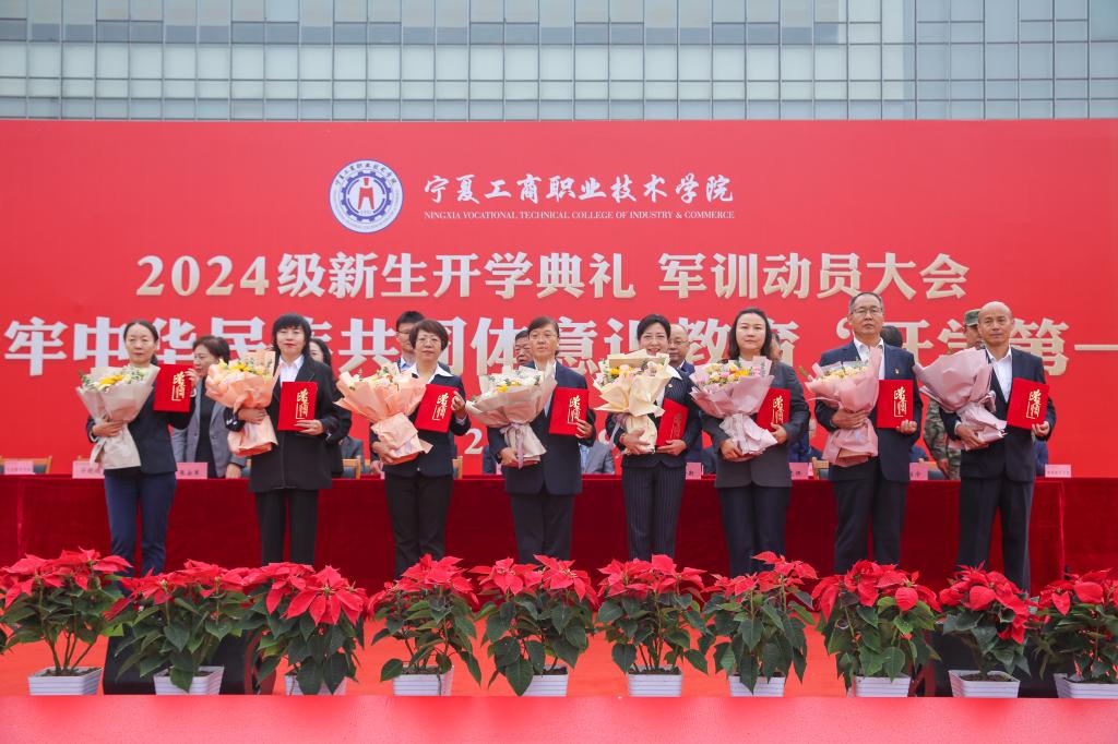 恰时逢仲秋,绵雨细纷纷。9月10日上午,宁夏工商职业技术学院2024级新生开学典礼 军训动员大会暨铸牢中华民族共同体意识教育“开学第一课”在图文信息广场隆重举行,新同学们跨越千山万水,怀着对大学生活的憧憬相聚工商学院,开启人生新的旅程。学院党委领导班子成员、西夏区武装部有关负责同志出席大会,二级学院党政负责人、副院长、专职辅导员、新生兼职辅导员以及全体2024级新生参加大会。大会由党委副书记宁晓娟主持。
