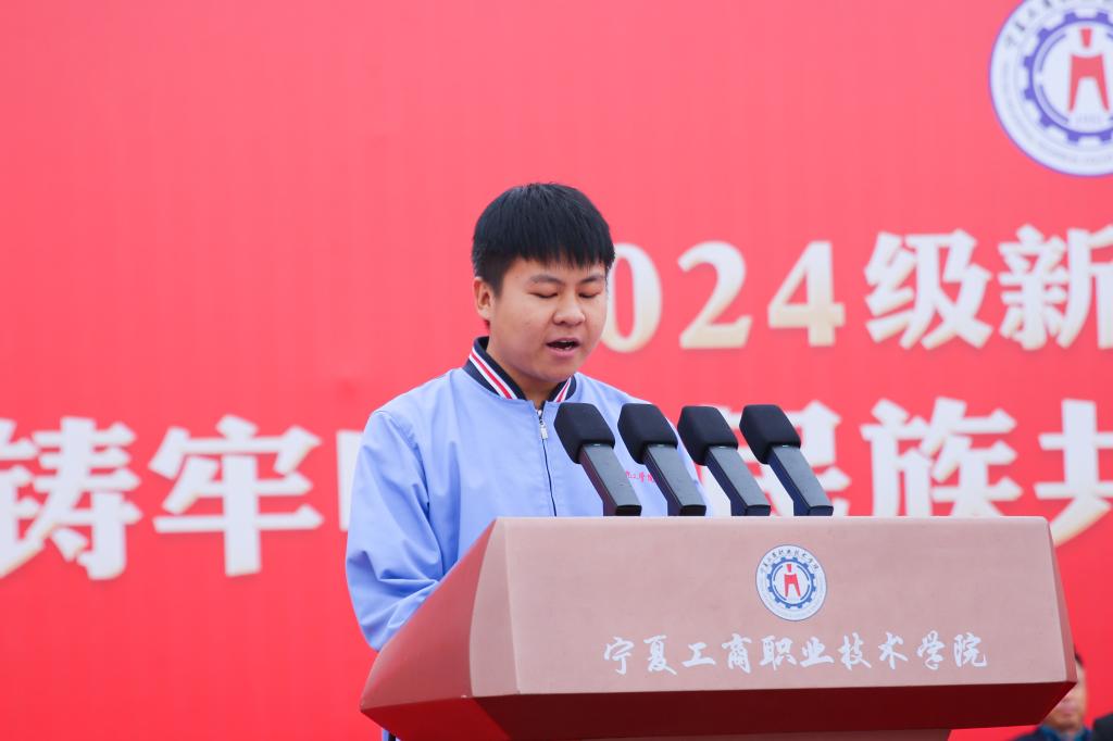 能源化工学院2023级应用化工技术班张凯龙代表全体在校生,向学弟学妹们表示热烈欢迎,并分享了在学院的成长和收获。鼓励新同学们把握机遇、脚踏实地、心怀大我,将青春汗水挥洒在祖国大地上,挥洒在实现中华民族伟大复兴的中国梦的路途中。