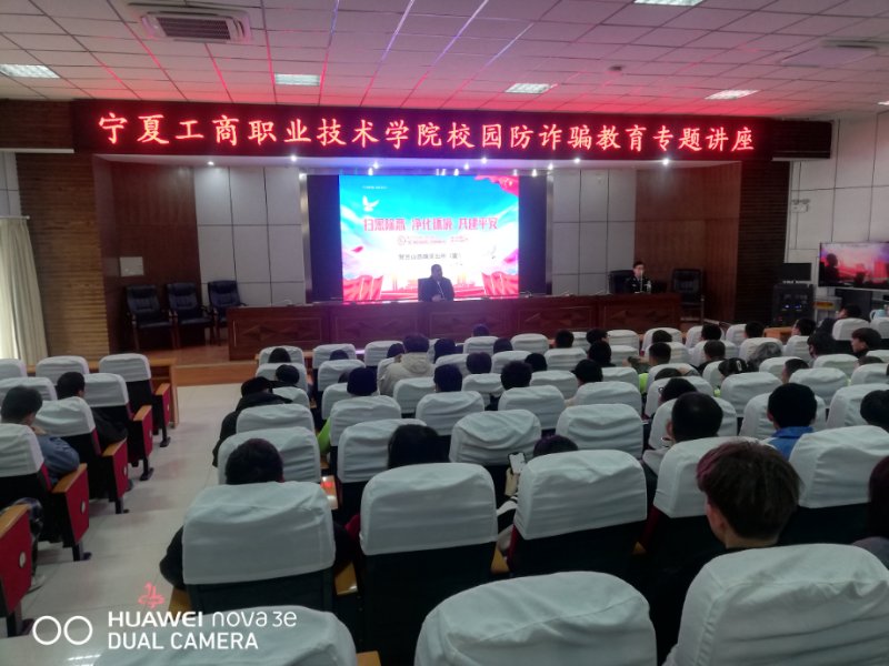 近期,西夏区职教园区各高校电信网络诈骗案件频频发生,为切实提高我校学生防范意识与能力,保障学生的财产安全,11月4日下午,学校保卫处联合西夏区公安分局贺兰山西路派出所,在学校清风园二楼报告厅开展了防范电信网络诈骗专题讲座。讲座由贺兰山西路派出所的李志鹏警官主讲。我校保卫处、中职部部分教师、辅导员,班干部、团干部学生代表近300人参加了专题宣讲。