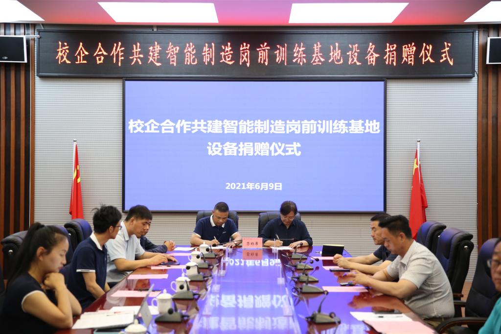 2021年6月9日,学校举行校企合作共建智能制造岗前训练基地设备捐赠仪式,副校长原秦英出席仪式,学校相关部门负责人及企业代表出席捐赠仪式,电气与控制工程学院院长施卫保主持了会议。