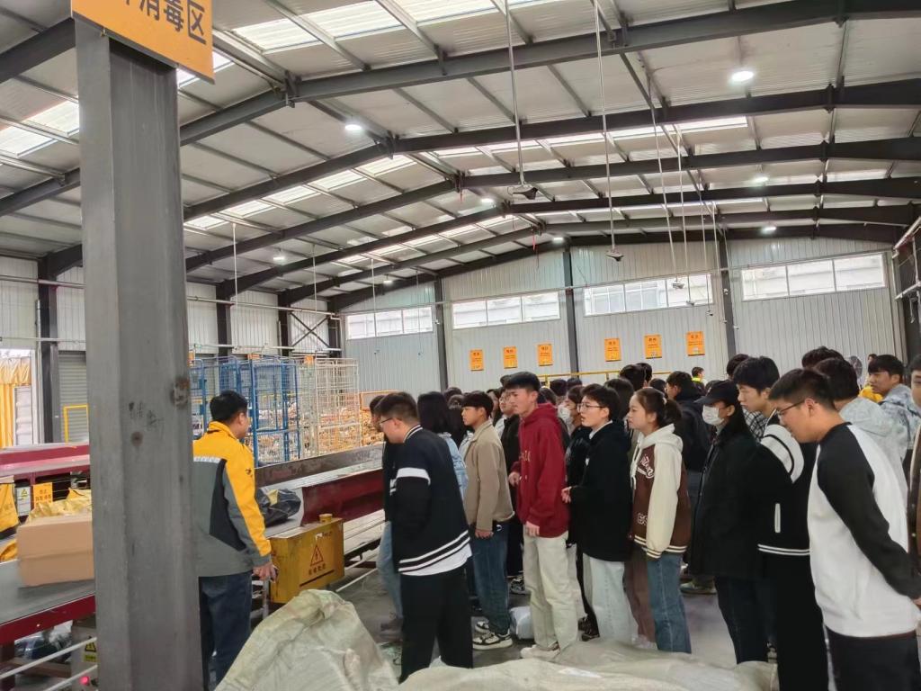 在中韵供应链有限公司,负责人向同学们介绍了韵达快递中心的整体状况,带领学生参观了自动化分拣作业现场,使学生现场学习自动化分拣、装运的先进设备和技术。增强了学生学习专业的积极性和对未来职业发展的信心。