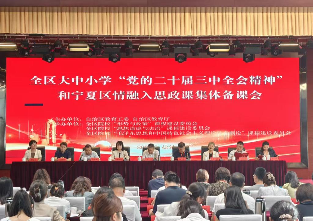 为深入学习贯彻习近平新时代中国特色社会主义思想,及时将党的创新理论融入思政课教育教学,守正创新推动思政课建设内涵式发展,增强思政课的思想性、理论性和亲和力、针对性,不断开创新时代思政教育新局面。8月22日-24日,在自治区教育工委、教育厅的统一部署和领导下,宁夏工商职业技术学院作为全区高校“毛泽东思想和中国特色社会主义理论体系概论”课程委员会建设单位,积极联合全区高校思政课建设联盟及“形势与政策”“思想道德与法治”课程建设委员会,在盐池宾馆举办了全区大中小学“党的二十届三中全会精神”和宁夏区情融入思政课集体备课会。全区各高校、区属中等职业学校、各市县中小学思政课教师代表共计150余人参加了本次会议。