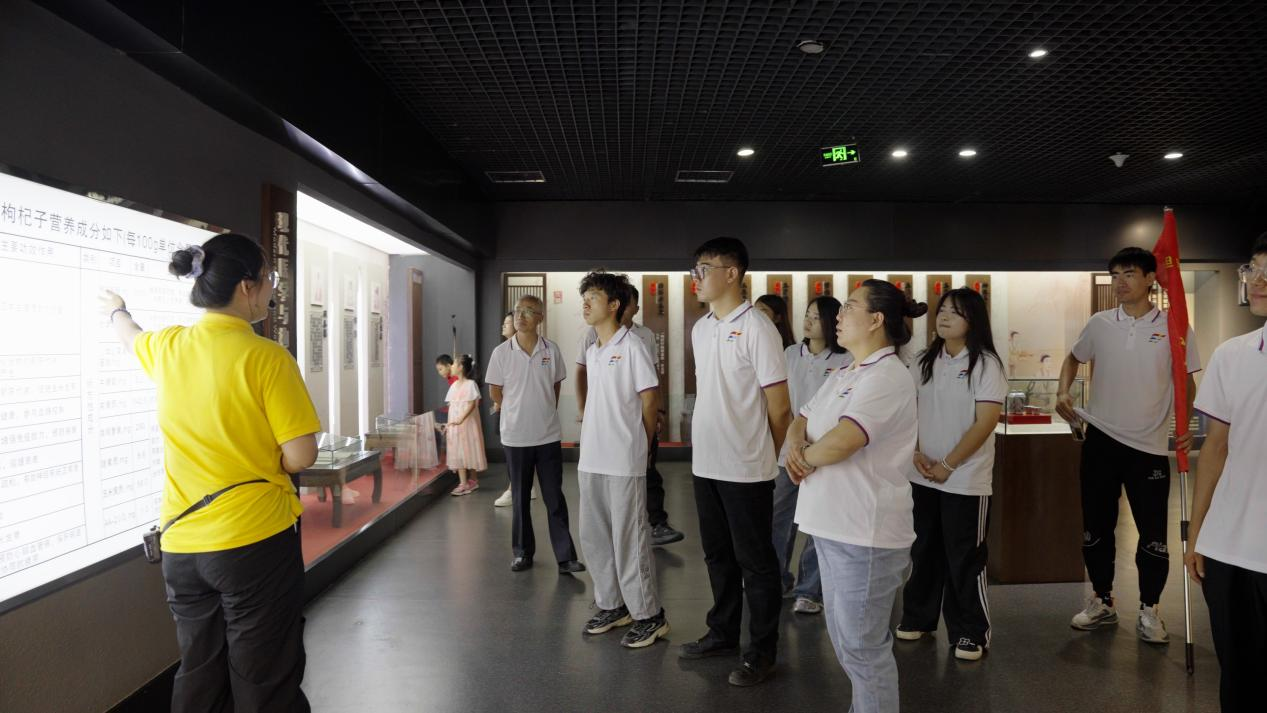 走进宁夏枸杞博物馆,跟随讲解员脚步,通过学历史、听故事、品味道、看产品,同学们知道了枸杞的来历、味道、生产包装过程以及枸杞苗、枸杞、枸杞树所产出的不同产品,以参观、体验的方式,了解到枸杞的种植历史、药用价值、食用方法及产业发展现状。