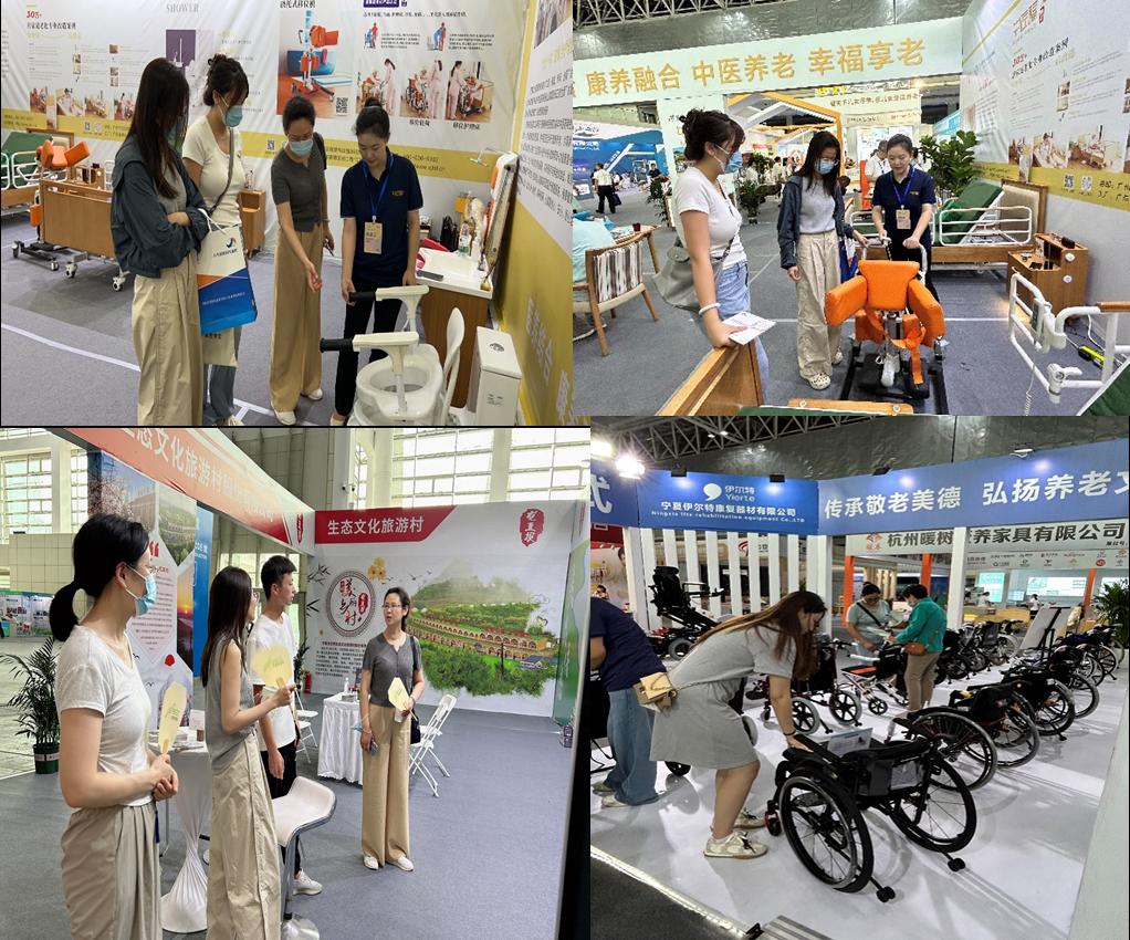 活动中,团队教师先后参观了智慧养老展区、综合服务区、养老服务展区、适老化产品展区、养老金融展区和旅居养老展区,各个展区依次展示了宁夏“数字民政”——智慧养老项目建设成果、智慧养老科技型公司设备、“互联网+养老”服务终端、智能健康管理系统;快递、急救等综合服务;宁夏知名养老服务机构、医养机构、居家社区养老服务企业相关服务及养老服务成果;老年人康复用品、健康睡眠、生活用品等家居生活用具,以及智能养老建筑、适老房产、无障碍设施等;金融机构养老金融业务、养老机构融资租赁等金融服务对接、老年人专属商业养老保险等;旅居养老合作省(自治区、直辖市)优质企业推介、区内旅居养老项目、养生旅游文化资源及产品等。