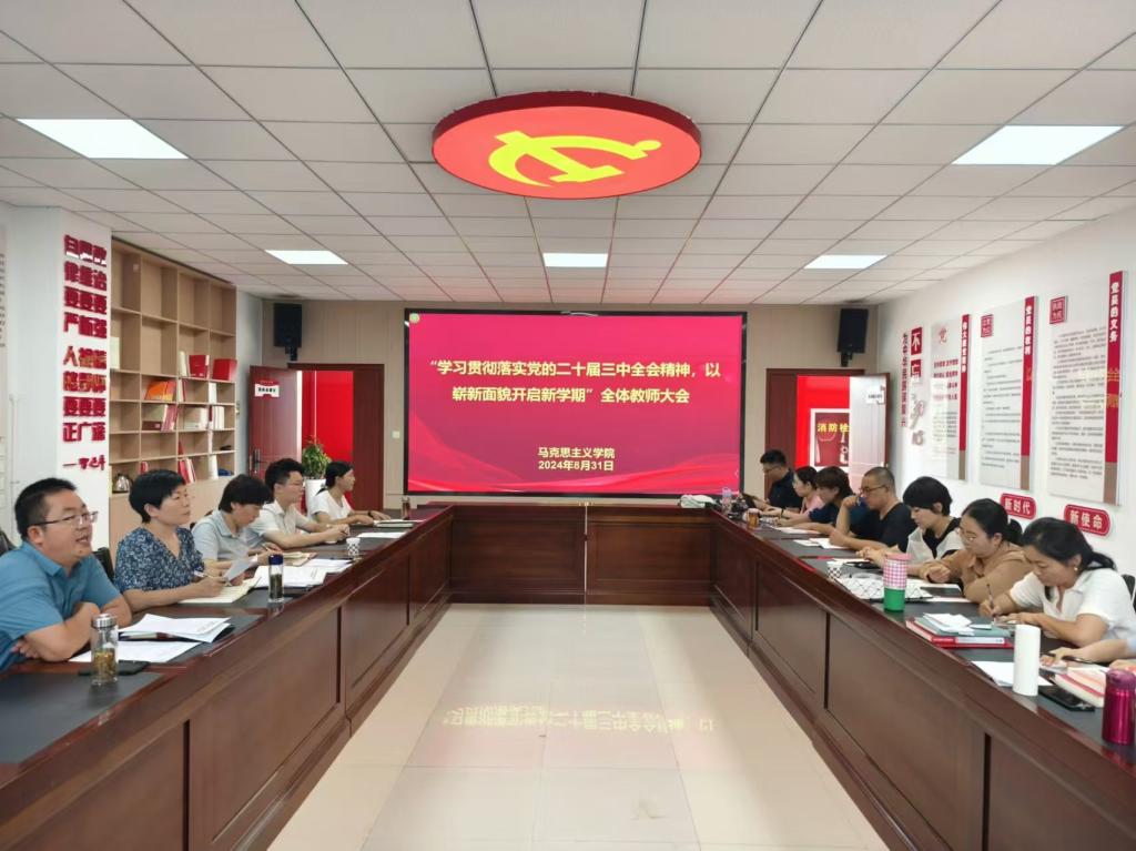 为深入学习贯彻落实党的二十届三中全会精神,推动学校申办本科层次职业教育,进一步办好关键课程、抓好关键队伍,守好意识形态主阵地,鼓足干劲,再启新篇,8月31日上午,马克思主义学院在学院会议室召开了新学期全院大会,学校党委副书记宁晓娟出席了会议。