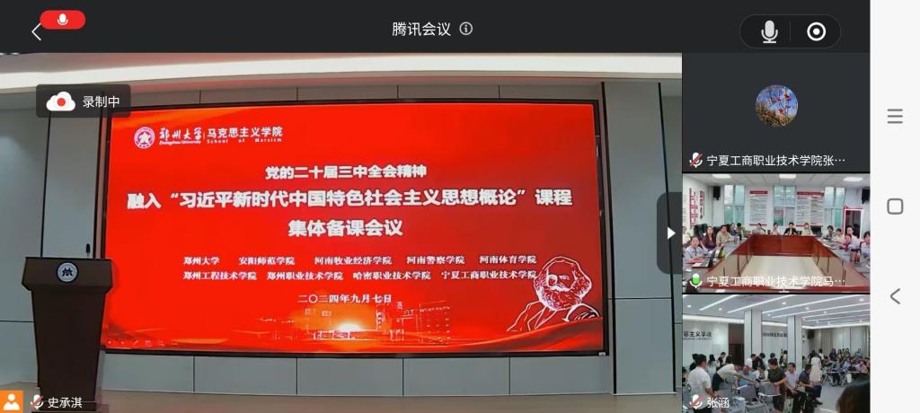 为深入学习贯彻落实党的二十届三中全会精神,及时将会议精神融入《习近平新时代中国特色社会主义思想概论》课程中,9月7日下午,郑州大学马克思主义学院与学院马克思主义学院在前期签订帮助共建协议的基础上,联合举办“党的二十届三中全会精神融入《习近平新时代中国特色社会主义思想概论》(以下简称“概论”)课程线上集体备课会。