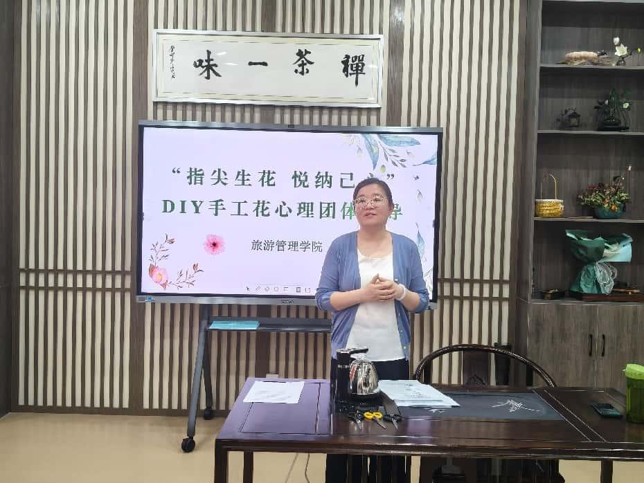为做好有温度的教育,让学生在动手中创造美、感受美,5月20日,旅游管理学院举办“指尖生花悦纳己心”DIY手工花团体辅导活动。活动由学校心理中心教师陈姗姗、旅游管理学院心理专员马丽英,组织带领全校50余名学生通过指尖创作探索自我,在创意与互动中传递心理正能量。