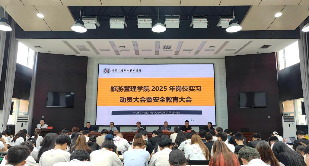 6月11日下午,旅游管理学院联合餐饮实训基地召开2025年岗位实习动员暨安全教育大会,为即将踏上实习征程的学子们送上最真挚的祝福与嘱托。学校党委委员、副校长薛新巧与学院领导班子成员、实习指导教师、辅导员以及141名怀揣梦想的实习生共同见证这一重要时刻。会议分为实习动员和实习安全教育两个阶段,由旅游管理学院副院长兼教师党支部书记苏黎主持。
