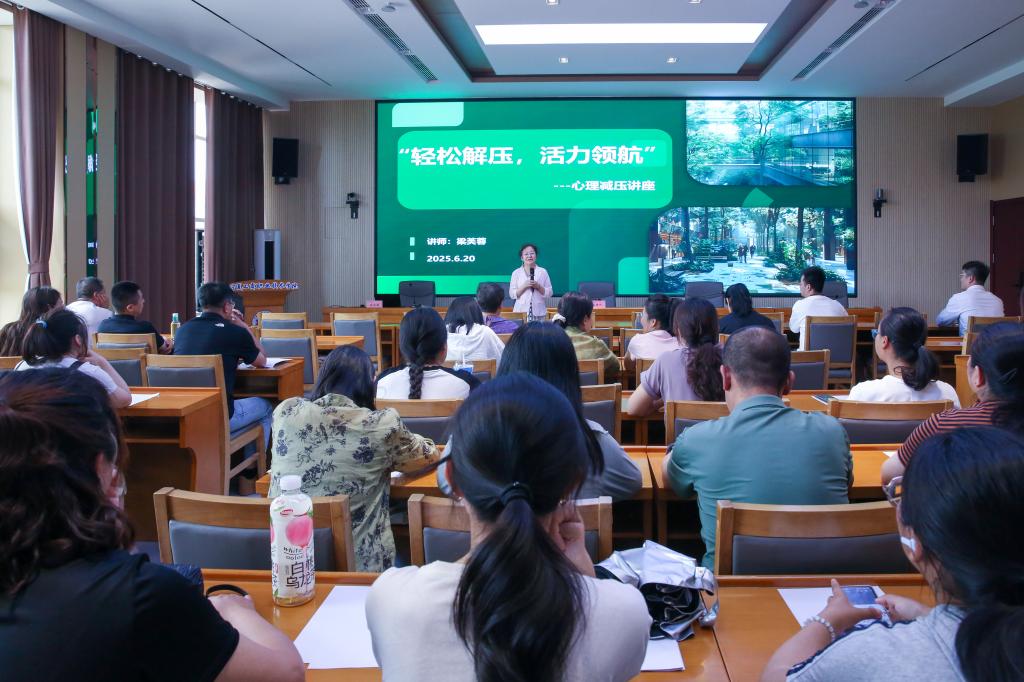 为关爱教职工身心健康,提升压力管理与情绪调适能力,6月20日下午,学校举办“轻松解压,活力领航” 教职工心理健康讲座,邀请宁夏古砚女性赋能讲师团高级讲师梁淳越担任主讲,全校80余名教职工共同参与此次心灵成长之旅。