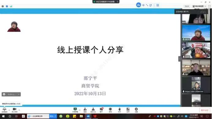 为进一步提高线上课堂教学质量,全面提升商贸学院教师的线上教学技能及课堂管理水平,商贸学院于10月13日晚19点至21点,组织全体教师开展了线上教学经验分享会,分享会由商贸学院副院长曲劲亮主持,部分教师代表进行了交流发言。